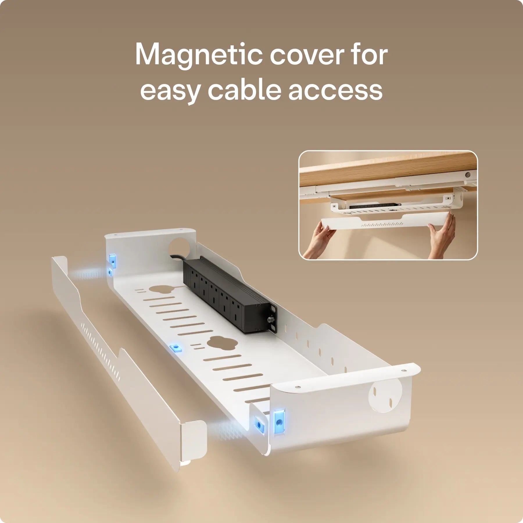 Cable management Pro is designed to hold everyday desk cables and wires, including power cables, adapters, chargers, and extension cords – all stored neatly inside the under-desk cable management tray.